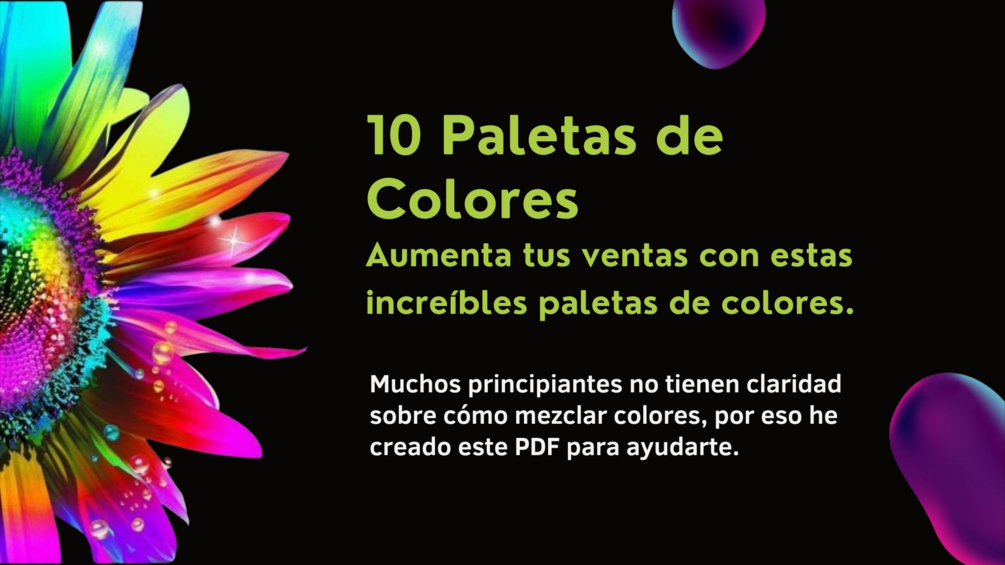 ¿Sabías que el color puede influir en la decisión de compra de tus clientes? Con nuestro nuevo producto digital, "10 Paletas de Colores", descubrirás cómo utilizar el poder del color para transformar tu marca y potenciar tus ventas.