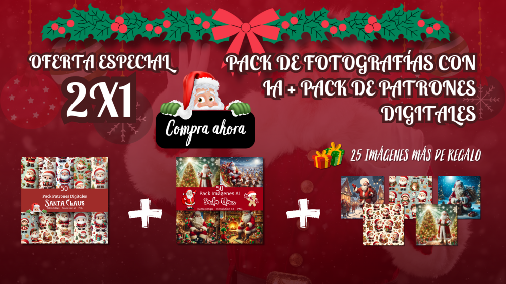 Oferta Especial de Santa Claus 2x1: Pack de Fotografías con AI + Pack de Patrones Digitales